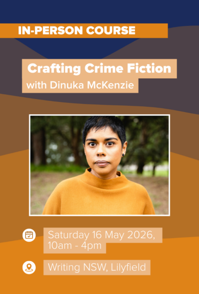 This writing course, Crafting Crime Fiction with Dinuka McKenzie, takes place at Writing NSW in Sydney.