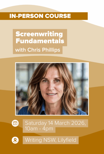 This writing course, Screenwriting Fundamentals with Chris Phillips, will be held at Writing NSW in Sydney.